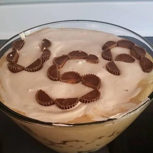 Place a third of the brownies in a 5-qt. glass bowl; top with a third of the halved peanut butter cups. spoon a third of the pudding mixture over the top. Repeat layers twice. Cover with remaining whipped topping garnish with reserved peanut butter cups.