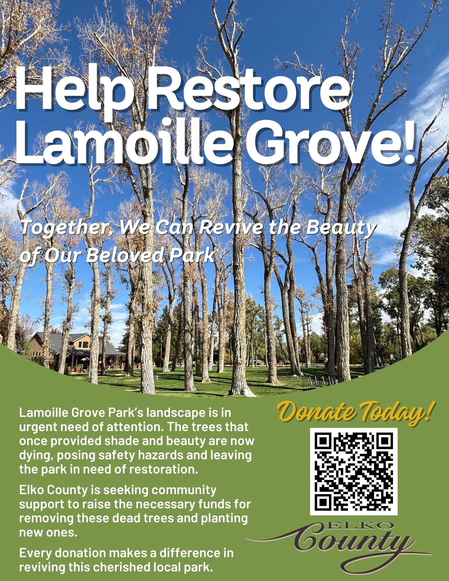 Trees in Lamoille Grove are dying, and Elko County is faced with the monumental task of removing the dead trees and replacing them with new ones to retain the beauty of the unique gathering spot.